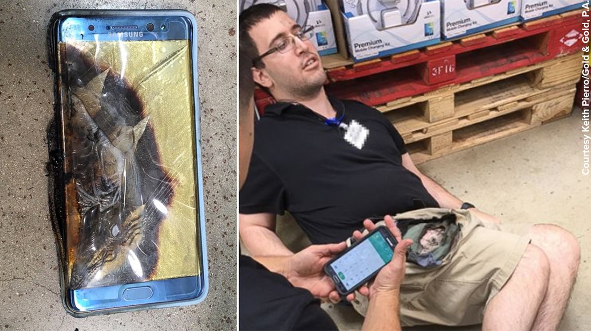 que um smartphone Galaxy Note 7 explodiu em seu bolso, deixando-o com